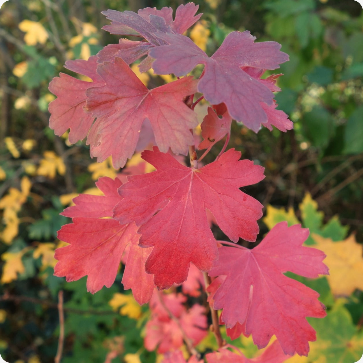 Also know as Buffalo Currant or Clove Currant, this flowering shrub produces edible berries mid-Summer. Its golden yellow Spring blooms are clove scented. Attracts pollinators. Drought tolerant. Leaves turn lovely scarlet shades in the Fall.