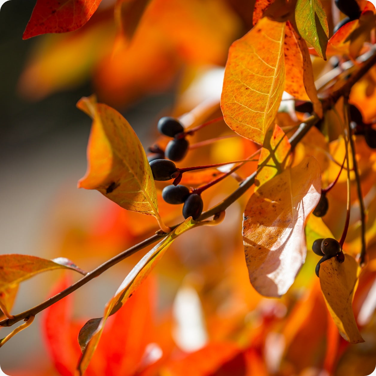 (Nyssa sylvatica Northern) Perennial. Zone 6. Native range—Ontario, Eastern North America. Cornaceae (Dogwood) Family. Also known as Blackgum or Sourgum, the oldest known Black Tupelo tree is over 700 years old! Trees provide a rich source of nectar for bees and their fruit are an excellent food source for wildlife. Fruit are also edible for humans, but quite sour and are often made into preserves.