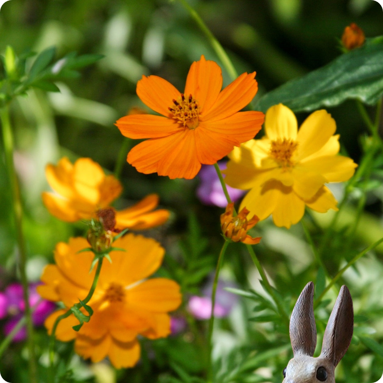 Bright Lights Cosmos are a joyful mix of gold, orange, red and yellow blooms. Plants can grow 2-4 feet tall. Cosmos are great at attracting bumblebees, birds and butterflies. Flower are a fun addition to you Summer bouquets! Plants will easily self-seed.