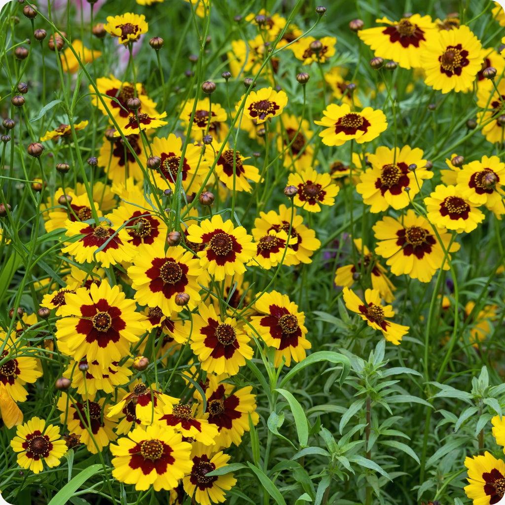 Beautiful chestnut-brown flowers laced with bright yellow. Dyer’s Coreopsis is lovely in the foreground of any flower garden. Native plant to North America.
