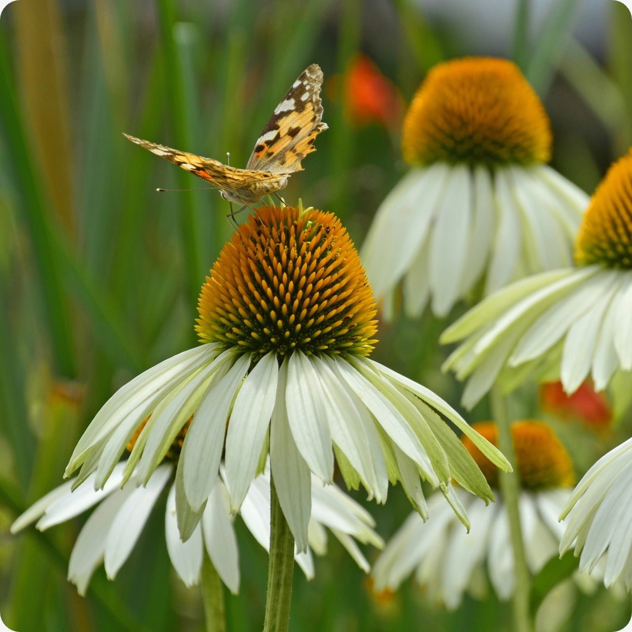 We are thrilled to offer White Swan Echinacea, a lovely variation of a true classic, first introduced in the 1980’s. Her beautiful, strong (and spiny) presence is a telltale of her powerful medicinal talents. White petals surround a copper coloured center creating blooms with both power & beauty. As with Purple Cone Flower, White Swan Echinacea’s roots possess similar medicinal traits that can be used to make medicine that ultimately strengthens the immune system. Her honey scented flowers are an added delight.