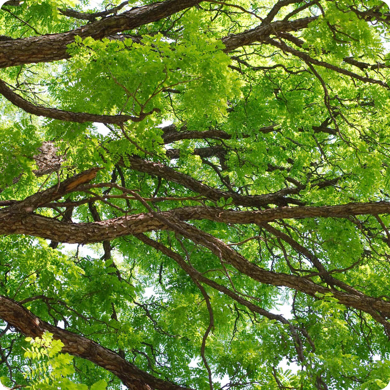 This tree has the largest leaves of any native tree in Canada! Its unique leaves are actually made up of about 70 leaflets, which make a beautiful and interesting silhouette. Its lacy foliage and large canopy casts dappled shade in summer, providing ideal filtered light for understory companion plants.