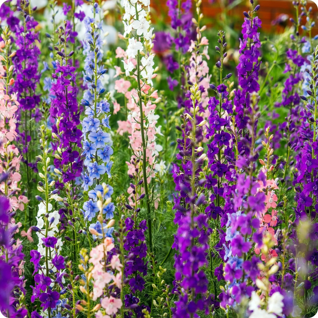 (Consolida ajaca) Annual. 80-90 days to maturity. Larkspur Giant Blend’s densely set blooms range in soft colours from lilac, rose, white, pink, salmon to light and dark blue. Its tall stems can grow up to 4 feet and need to be supported against the perils of the wind. Due to their height, they’re also a great choice to plant along borders or fence lines. Larkspur Giant Blend are excellent as cut flowers, in both fresh and dried arrangements. They’ve been delighting onlookers and pollinators since the 1930s.