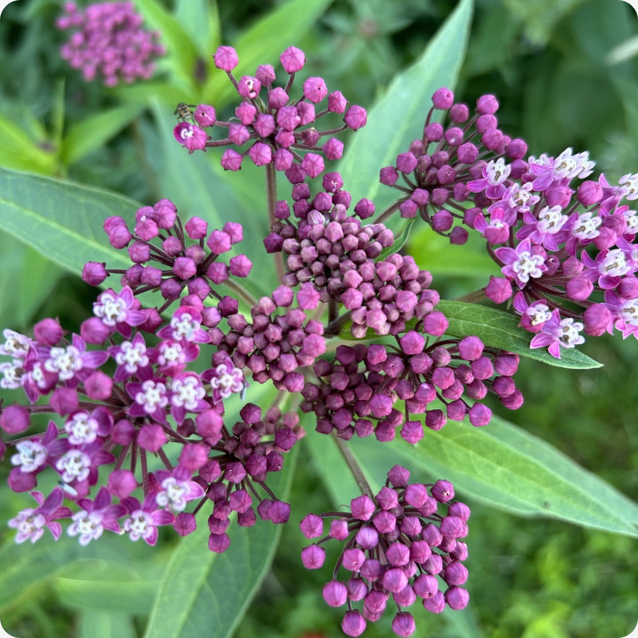 The beautiful Swamp Milkweed is native to central and eastern North America. Attractive to Monarch butterflies and needed by them for reproduction. The flowers have a lovely scent of vanilla. Swamp Milkweed is very adaptable to home gardens and tolerates heavy clay and wet ground very well.