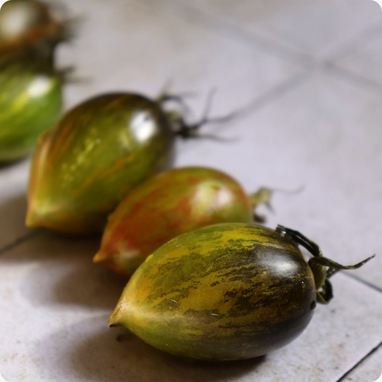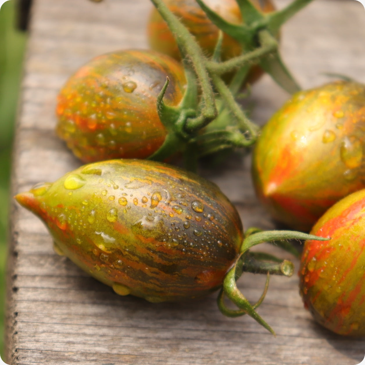 Brad’s Atomic Grape Tomatoes are a feast for your eyes and taste buds! These plum shaped cherry tomatoes grow in a rainbow of colours, from purple, red, orange and green stripes. Trust us, you’ll want to see their unique coloration for yourself! Brad’s Atomic Grape Tomatoes were first bred by Brad Gates of Wild Boar Farm in California, a farmer with a true passion for interesting and beautiful tomatoes! Their sweet flavour makes them great for snacking.