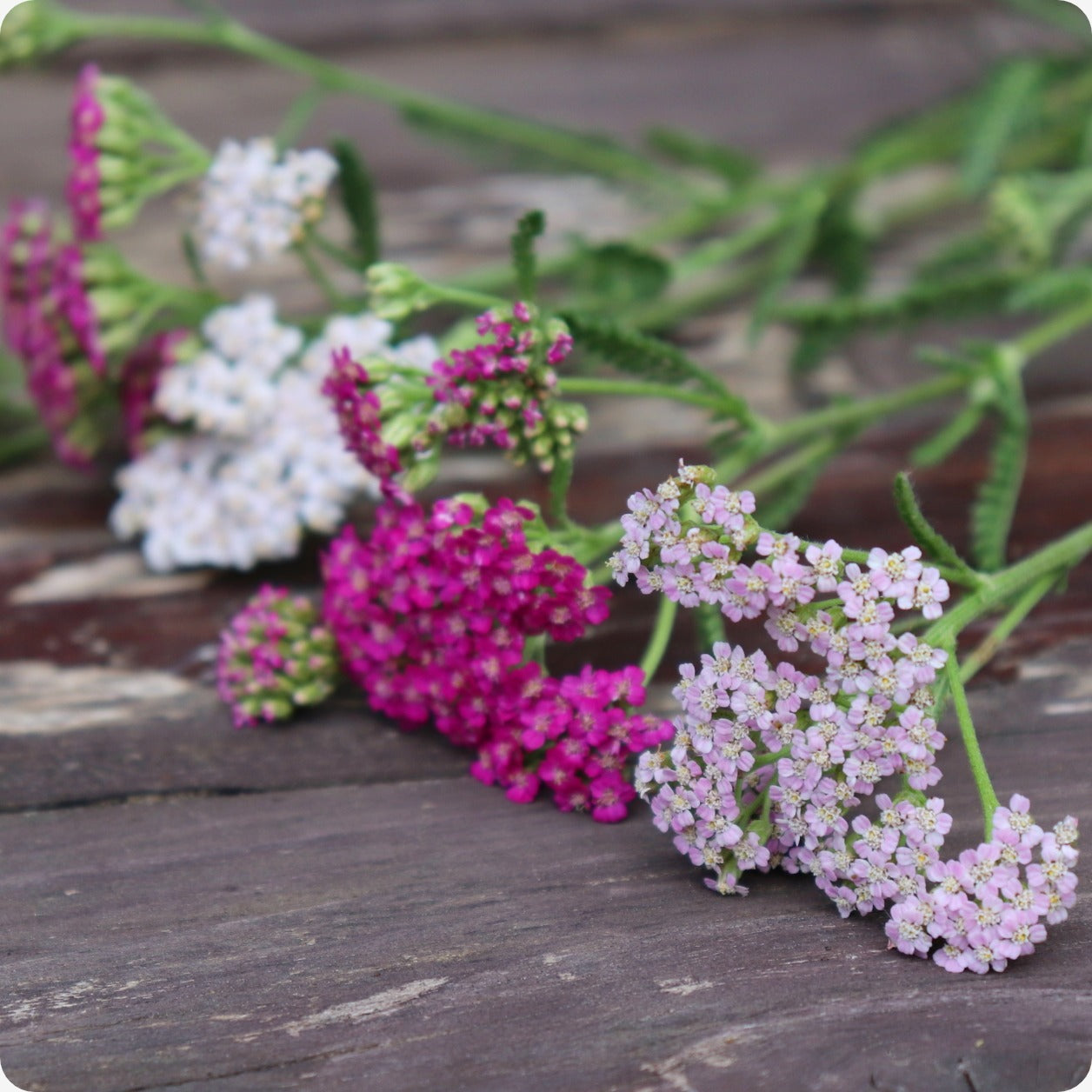 Yarrow is a strong and powerful plant with many medicinal, spiritual and ornamental uses. This Red variety is said to be slightly less potent, however still holding many similar properties. Stems can grow 2-4 feet tall with aromatic fern-like leaves and blooms in a mix of light and dark pink shades. Red Yarrow Mix is loved by pollinators, especially butterflies! An excellent cut flower, staying vibrant both fresh and dried.